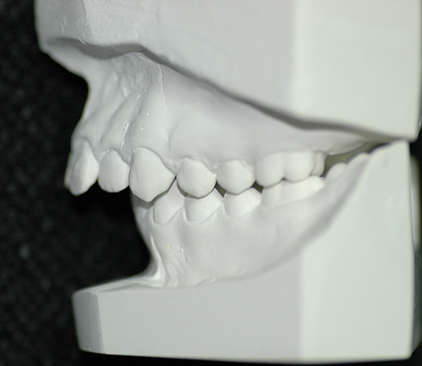 A bit of an problem seen here at age 12, the upper arch was also quite narrow but the teeth were well-formed and well-shaped. The lower jaw was under-developed but we were able to manage the growth potential to aid in treatment.